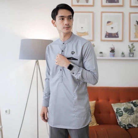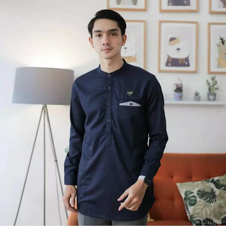 Potongan lengan panjang modern yang maskulin, menyempurnakan gaya santun dan berwibawa untuk ibadah maupun acara formal.